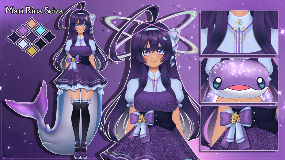 Long, long ago, ancient magicks helped to form the universes of the galaxy by gathering and giving birth to their respective planets. Each world that was born this way was like a firework, bursting magicks from within to form life. It was from these bursts of energy that the remnants of magick were scattered throughout space, and eventually, enough has been created to soon condense into a single entity of pure, raw energy. This new creation, a small and pitiful thing, was no universe or planet. It was a being that began to form thoughts, emotions, and soon, a sense of identity. Born from the love of the planets giving life to their world, this entity would begin to endlessly wander the cosmos in search for just that; love.As their existence became more widespread though, traveling to each planet, greedy creatures who wished to use the ancient magicks for themselves would begin to hunt the creature down. Their trips soon turned into fleeing from planet to planet for their life. This would one day lead them to meeting another entity who traversed the universes like them, but did not care for the ancient magicks like the others. He too sought companionship, just like them. Thus, the two decided to travel together. As time passed, they became attached to one another, protecting one another from harm's way and eventually, falling deeply in love. Giving themselves a name, a purpose, a dream, Bo the Knight was born to protect Mari the Princess.One day though, in a battle to protect themselves, Bo suffered grave injuries, forcing the two to flee and seek refuge. They disappeared, far far away where no one could find them... Earth. A planet known for having many creatures of all kinds, mystical or plain, surely no one would try to capture an ancient entity such as Mari. Especially if they laid low. Unfortunately though, for Bo, Mari was a very curious creature. Wanting to learn more of Earth and it's ways, the best way to do that was by exploring the internet. Falling in love with games and idol culture, Mari would show it to Bo, eventually "streaming" it to him so that he may enjoy it alongside them. Which leads us to the present, where Mari now streams to the world as well alongside Bo, sharing their adventures with all.Sure, they should be lying low... but Mari seems to be enjoying streaming to others, and now wants to be an idol. So, Bo, the ever loyal knight, must do what his pricess desires. After all, an idol and her bodyguard is technically the modern day princess and knight.